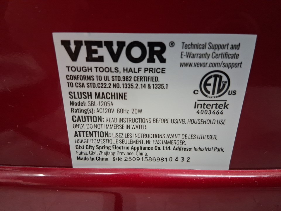 VEVOR SLUSHY MACHINE - 32OZ - red/white (MODEL: SBL-1205A)