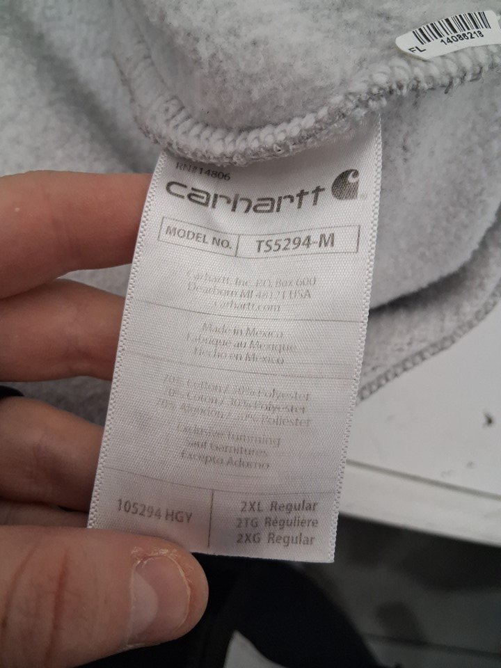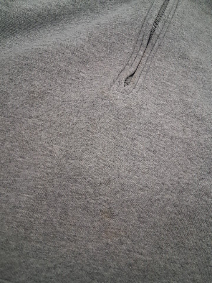 Front of sweatshirt there is a couple small brown discolored stains, and tags are faded