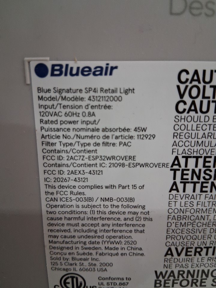 BLUEAIR blue signature sp4i retail light Air Purifier with app/smart phone connectivity - 17.2" x 15.5" - cleans up to 3385 ft² - grey (MODEL: 4312112000)