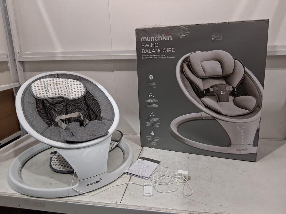 MUNCHKIN lightweight SMART bluetooth baby SWING with natural sway in 5-speed & remote - WHITE/GREY - (MODEL: mkca0788)