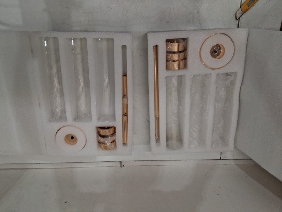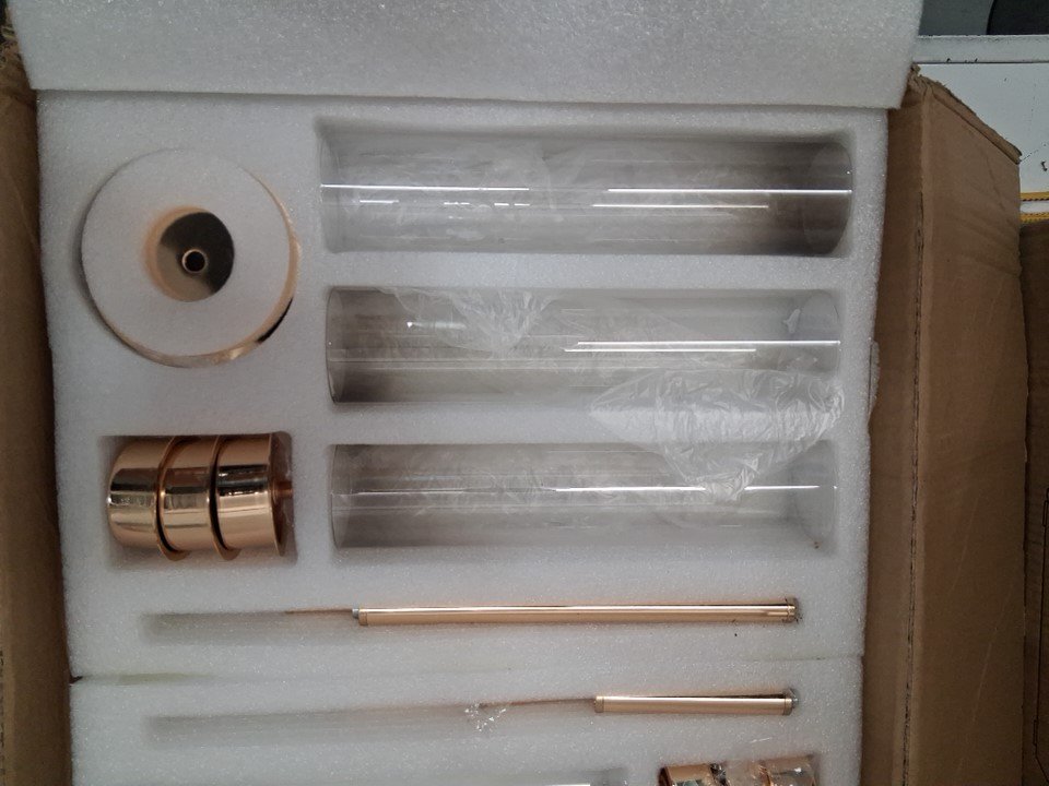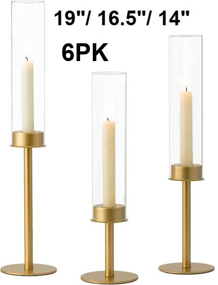 6pk hewory Hurricane Candlestick Holders - 19" / 16.5" / 14" - matte gold/clear