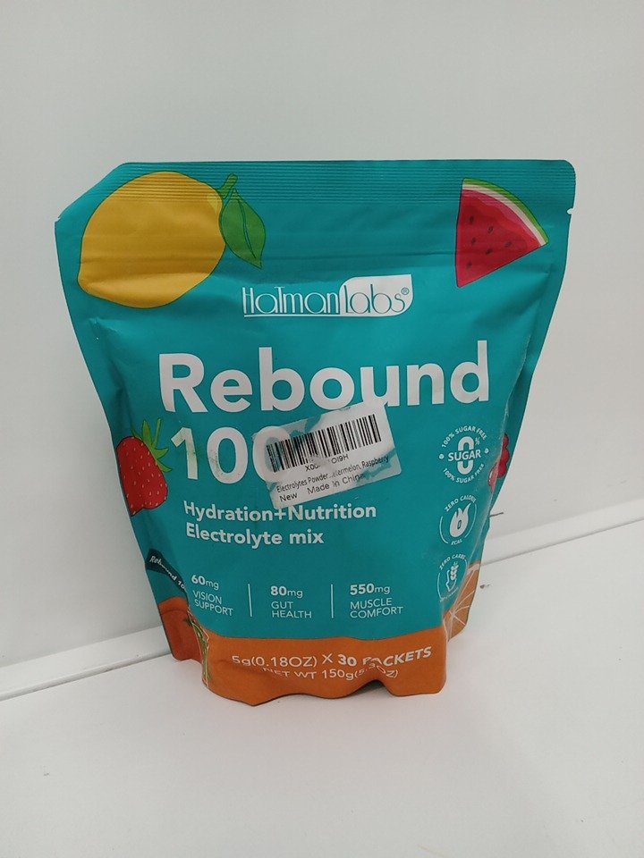 30PK HATMANLABS rebound 100 hydration + nutrition electrolyte drink mix - sugar-free - watermelon, orange, strawberry, lemon, raspberry