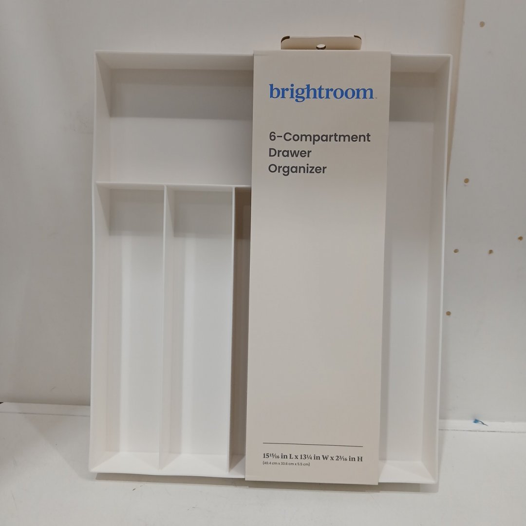 BRIGHTROOM 6-COMPARTMENT DRAWER ORGANIZER - 15.92" x 13.25" x 2.2" H - White