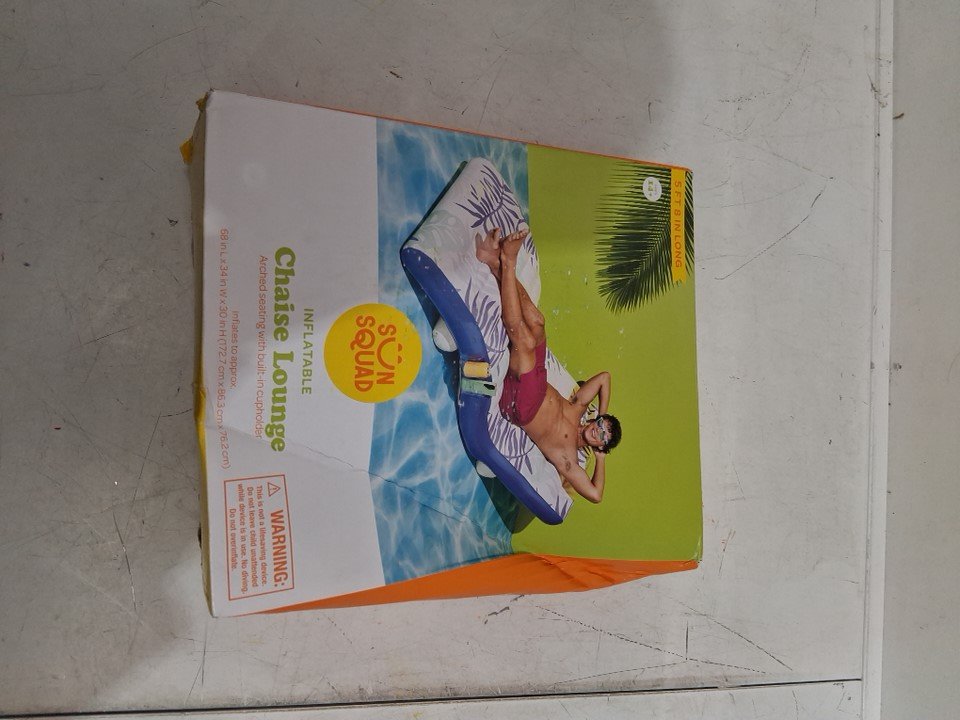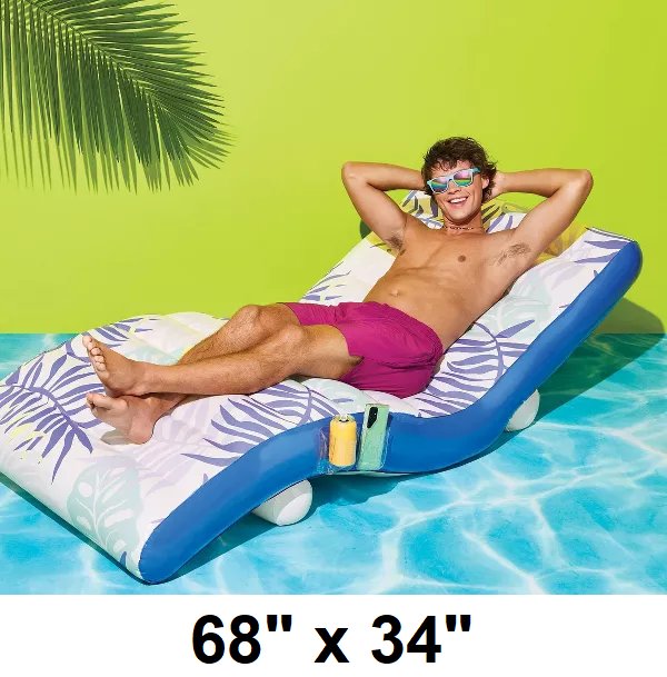 sun squad inflatable chaise lounge water seat chair - 68" x 34" - white/blue