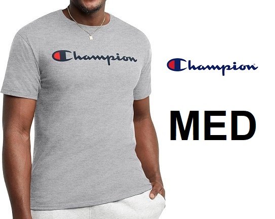 men's champion classic logo jersey t-shirt - medium - oxford grey