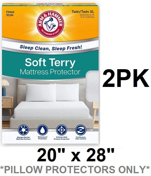 2pk Arm & Hammer Soft Terry Pillow Protectors - 20" x 28" each - WHITE