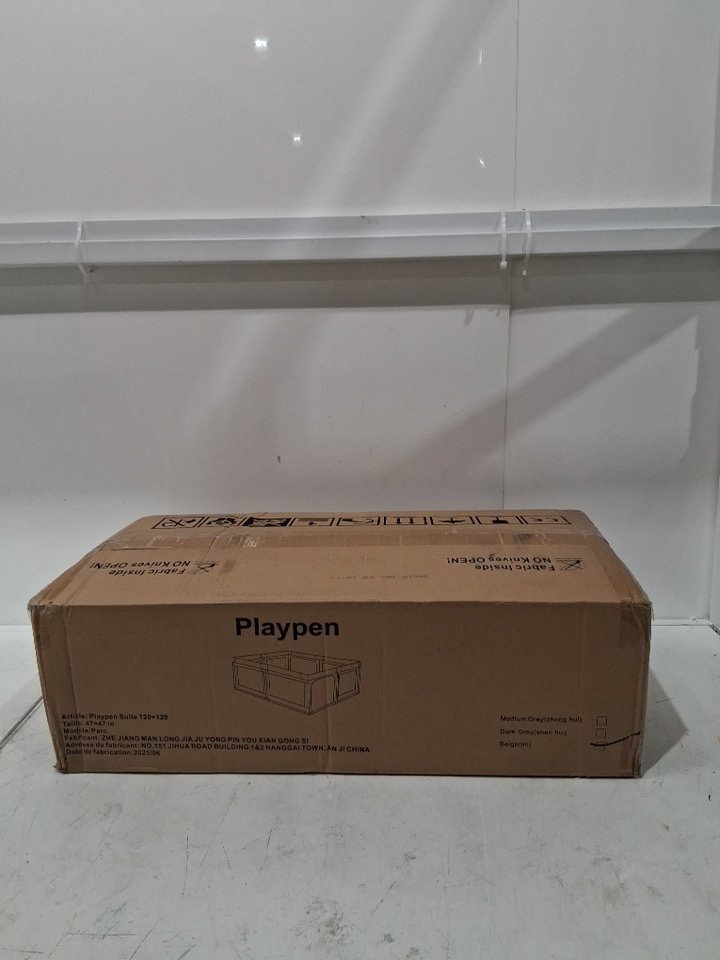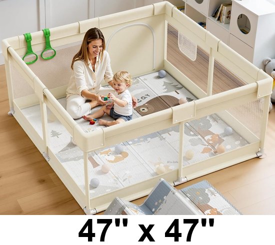 BABY PLAYPEN WITH BASE mat AND ANTI COLLISON STRIP - 47'' X 47'' - beige