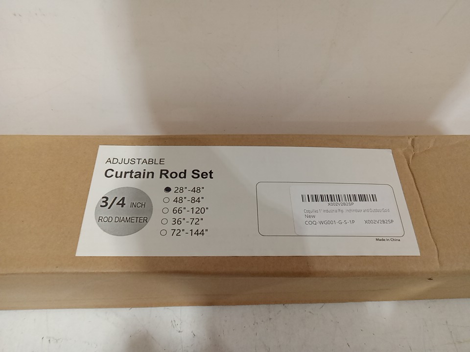 Coquilles Industrial Pipe WALL MOUNT Curtain Rod for windows - 28" - 48" - gold (model: COQ-WG001-G-S-1P)
