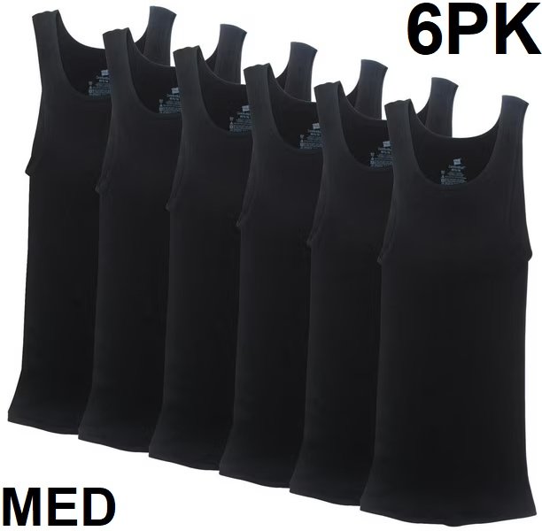 6PK MEN'S HANES COMFORT SOFT TAGLESS A-SHIRT TANK TOP - MEDIUM - BLACK (MODEL: MWP301)