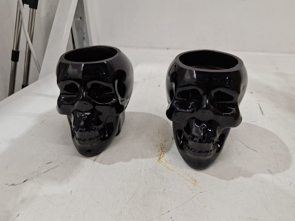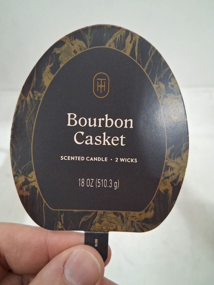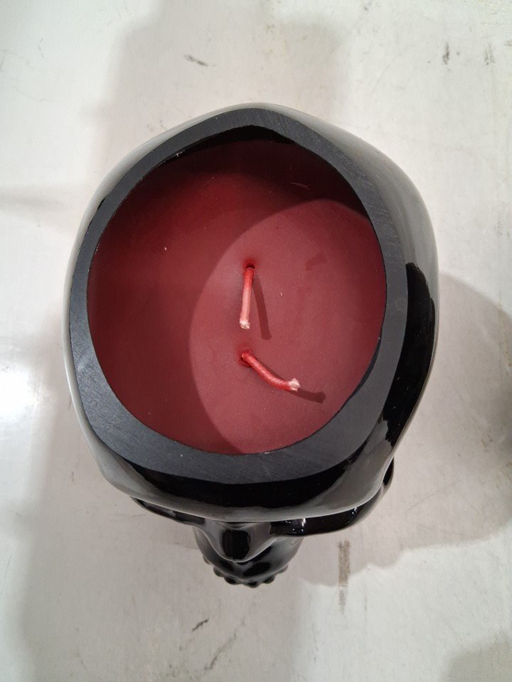 2pk threshold bourbon casket scented skull shaped candle - 18oz - black/red