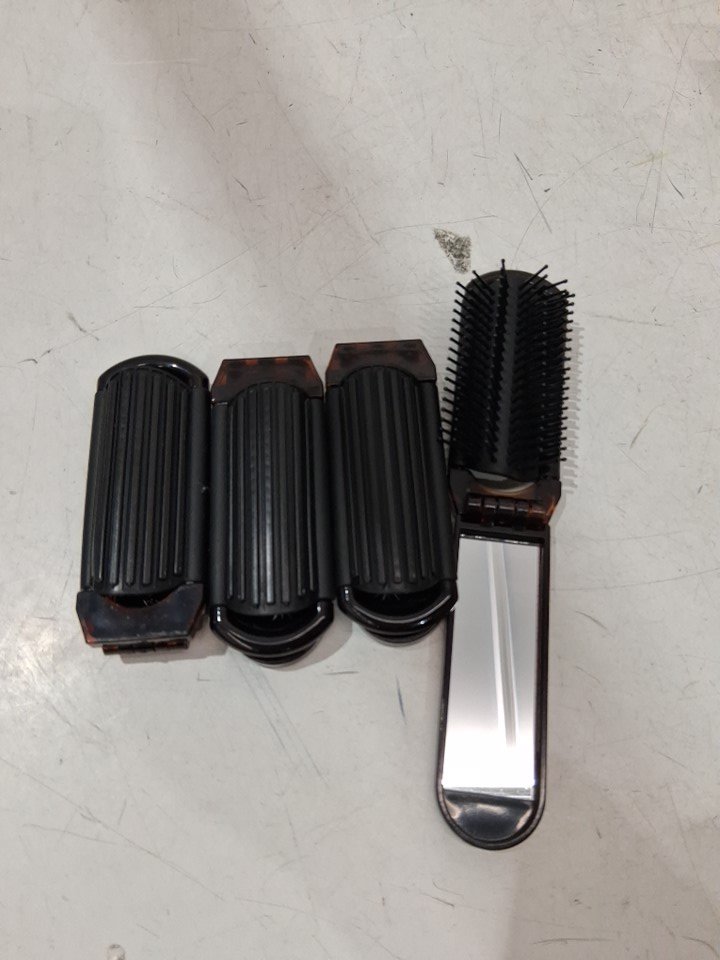 4PK Nuenen PORTABLE Folding Hair Brush with Mirror - 8'' - BLACK/BROWN