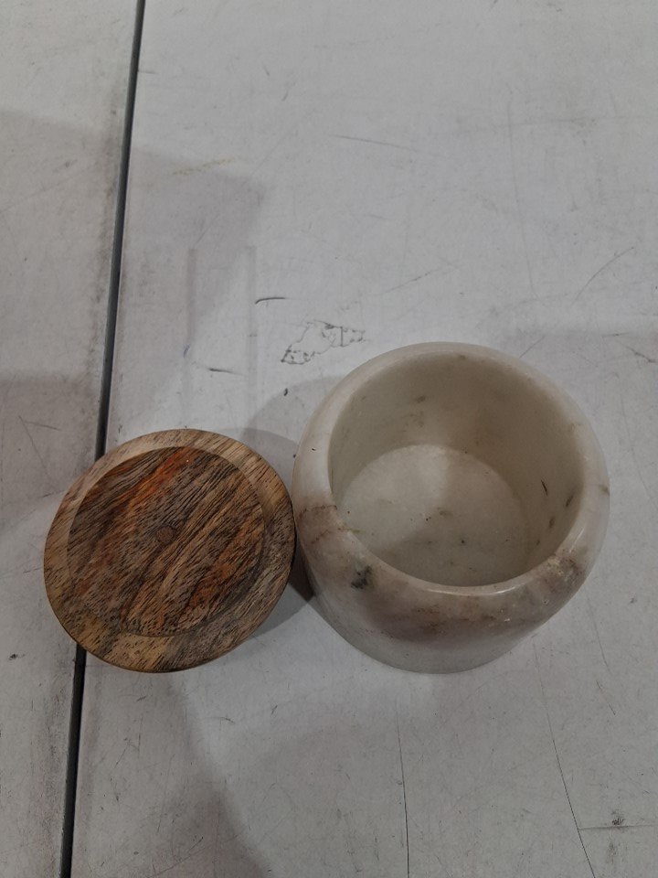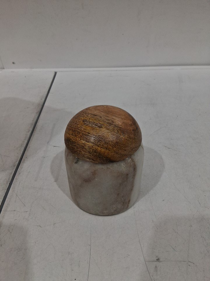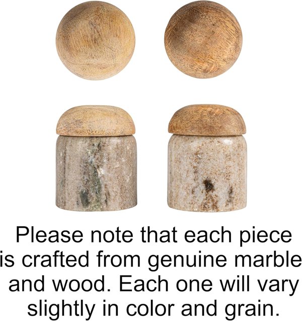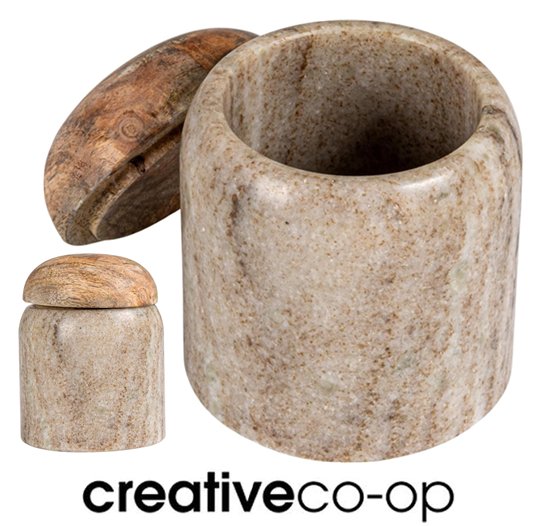 CreativeCo-Op Modern Marble Natural Canister WITH MANGO WOOD LID - 2.75" x 2.25" - MARBLE/WOOD