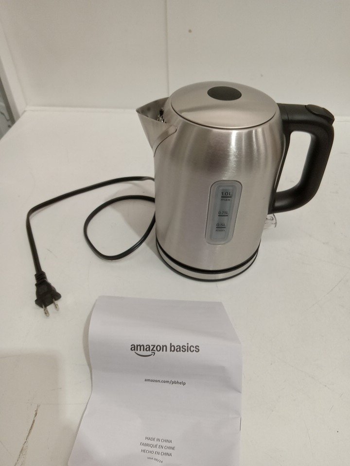 AmazonBasics Stainless Steel Fast, Portable Electric Hot Water Kettle for Tea and Coffee, 1.7-Liter, Silver