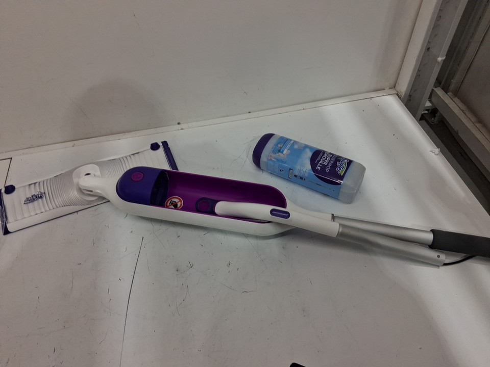 Light scuffs on connection from prior use- The cleaning solution is about 2/3rd full- was leaking slightly, has been wrapped up in package-