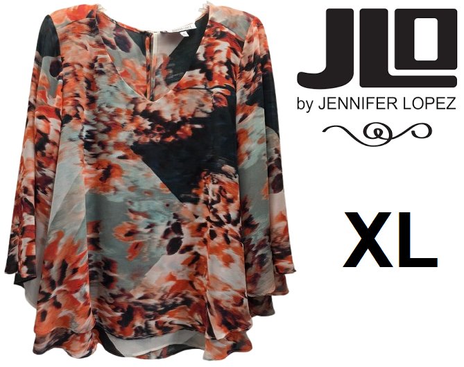 WOMEN'S jennifer lopez 3/4 sleeve v-neck blouse - extra large - multi-colour