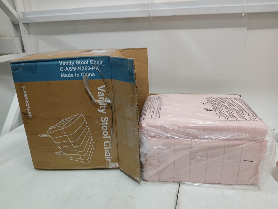 Faux Fur Soft Padded Vanity Stool WITH STORAGE - 19" x 16" x 12.2" - 220LB MAX - PINK/ GOLD (MODEL: ZHUMI-C-ASM-K253-pk)