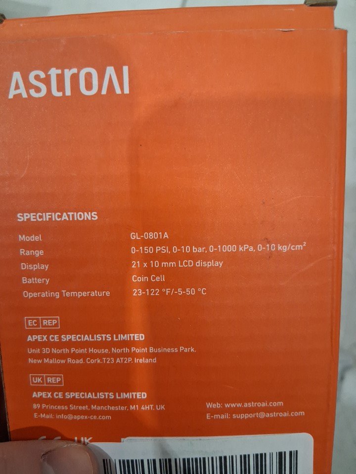 ASTROAI DIGITAL TIRE PRESSURE GAUGE - 150 PSI - 4 SETTINGS - SILVER (model: gl-0801a)