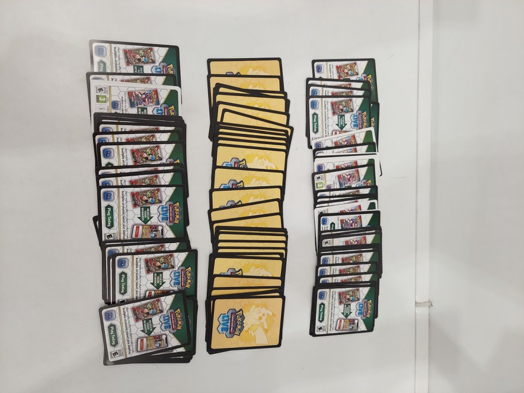 Please note that these are code cards from opened packs only and staff was not able to confirm how many of them, if any, have been redeemed. Please be aware of this prior to placing bids as redeemed codes cannot be redeemed again. These code cards are for the digital card game pokemon tcg live available on ios, android, & pc.