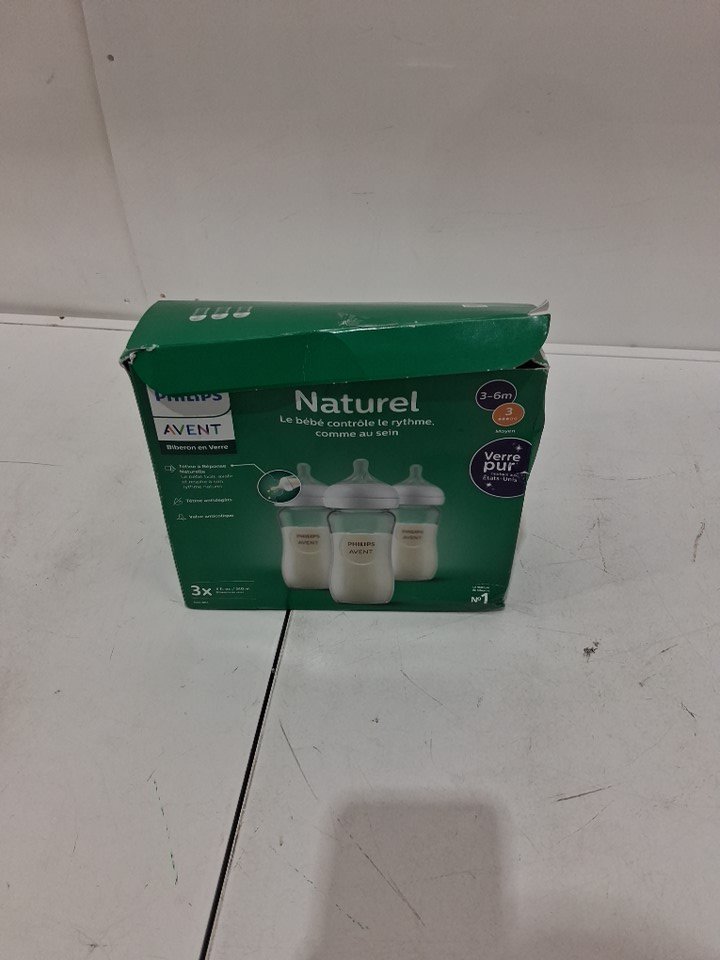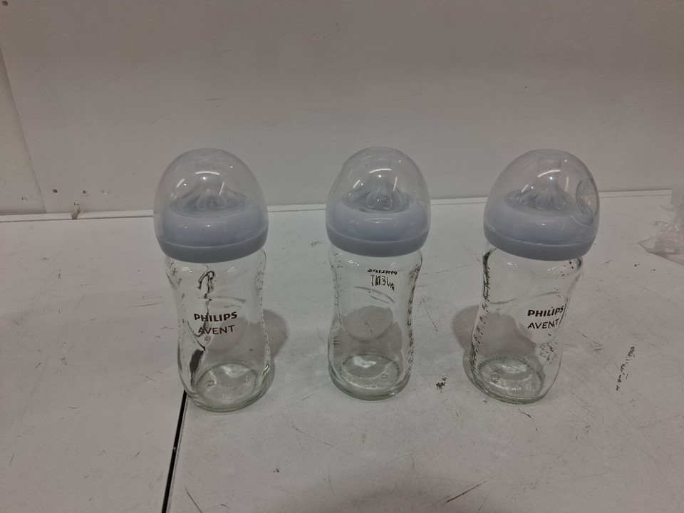 3PK PHILIPS Avent Natural Glass Baby Bottles with Natural Response Nipples - Medium Flow, Flow 3 - 8OZ - WHITE/CLEAR (model:‎ SCY913/03)