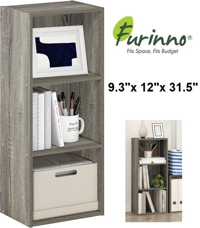 Furinno LUDER 3-Cube Bookshelf - 9.3" x 12" x 31.5" Bookcase - French Oak (model: 11003gyw)