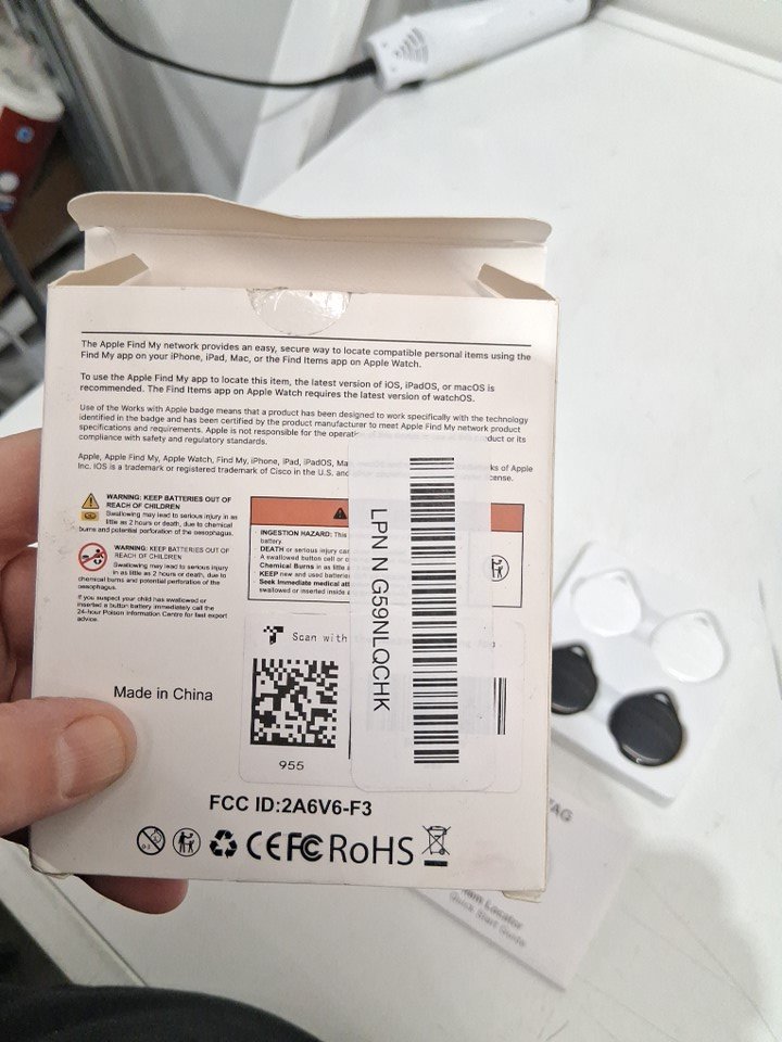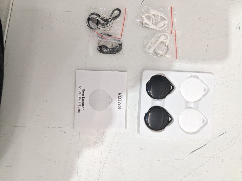 4pk VOtag bluetooth tracker key finder, with key ring attachments- IOS ONLY, 100db+ sound for easy hearing- 2x black/2x white