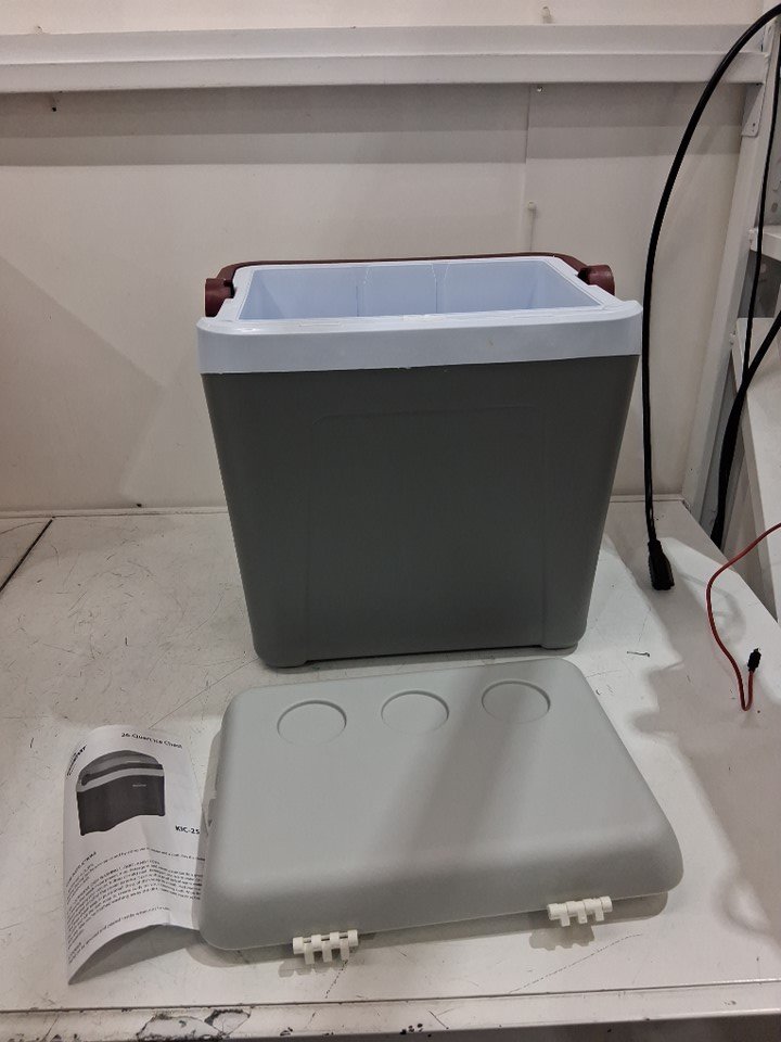 Koolatron Ultra Kool Ice Chest Cooler with Carry Handle - 25 L/26qt Capacity - grey/red - (MODEL: KIC-25)
