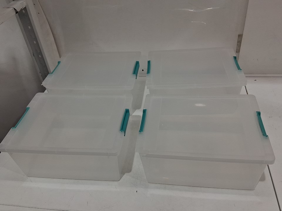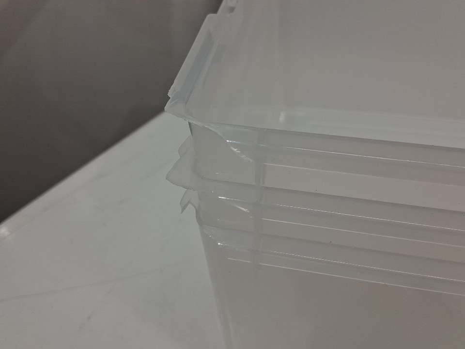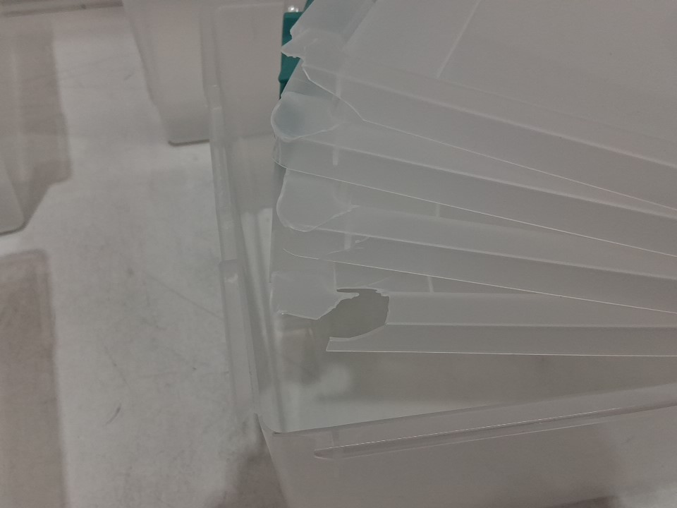 Each of the bins and lids has minor cracking in the same corner likely due to shipping, see photos.