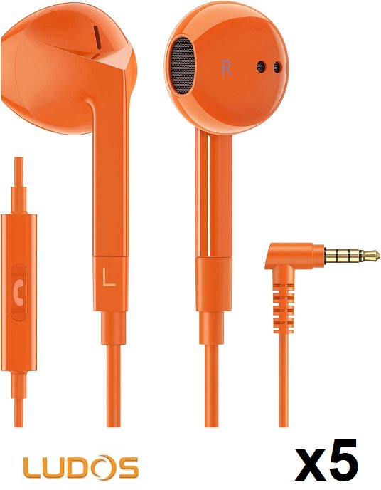 5 ludos FEROX Wired Earbuds in-Ear Headphone with microphone - 3.5MM JACK - ORANGE (model: FEROX)
