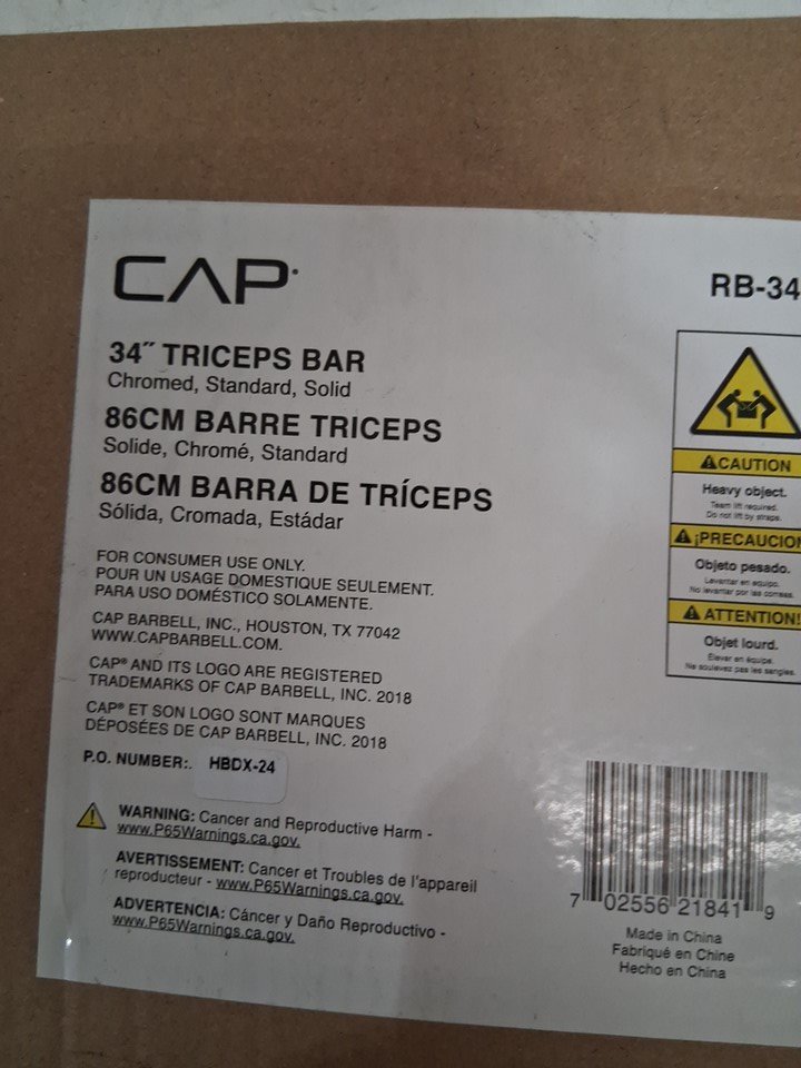 CAP Barbell Standard Triceps Bar - 34" - CHROME