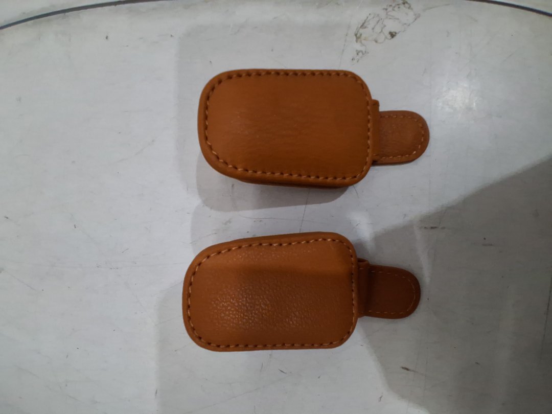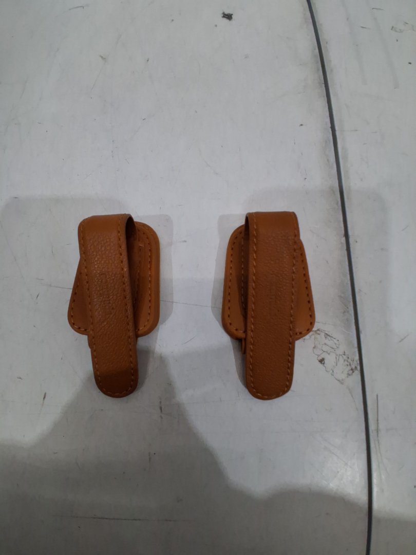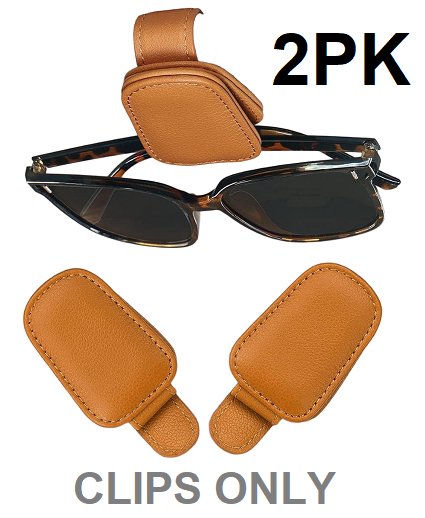 2PK COMPUDA Genuine Leather SUNGLASS HOLDER CLIPS FOR CAR VISOR - BROWN