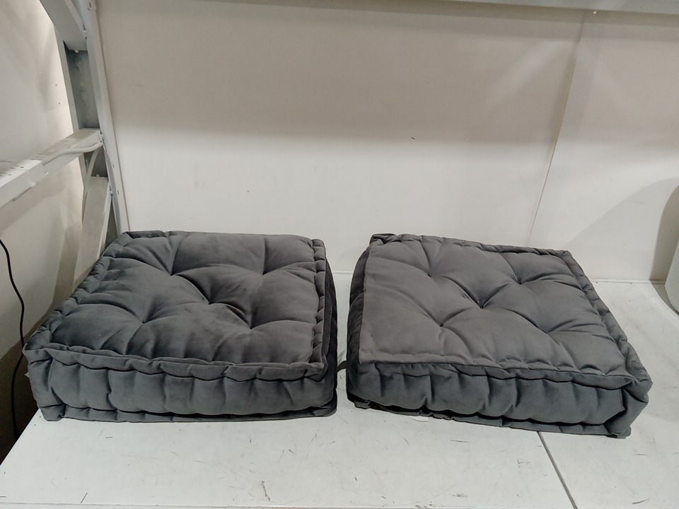 2PK Sweet Home Collection velvet Floor Pillow Square Tufted Decorative Cushion - 20" x 20" - grey (model:flr-pil-gry-2pk)