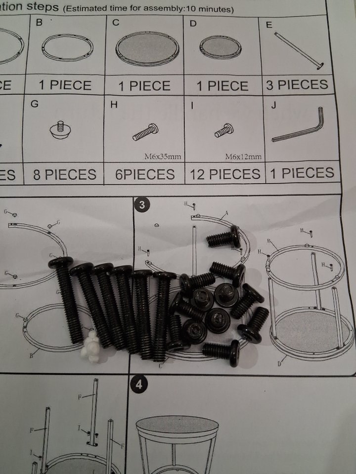 Please note the tables show signs of previous use with the protection/padding pieces (G) already being attached to the bar and with some smudging on the tops, see photos.