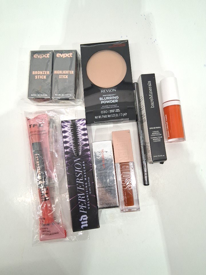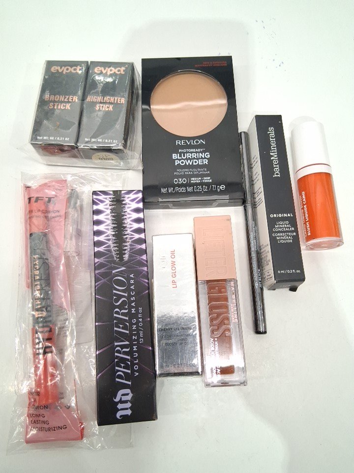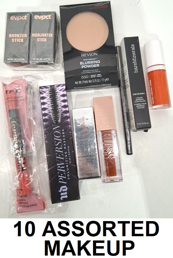 10 assorted makeup - assorted brands, shades and finishes - bronzer / highlight / facce powder / blush / lip gloss / mascara / lipstick / concealer