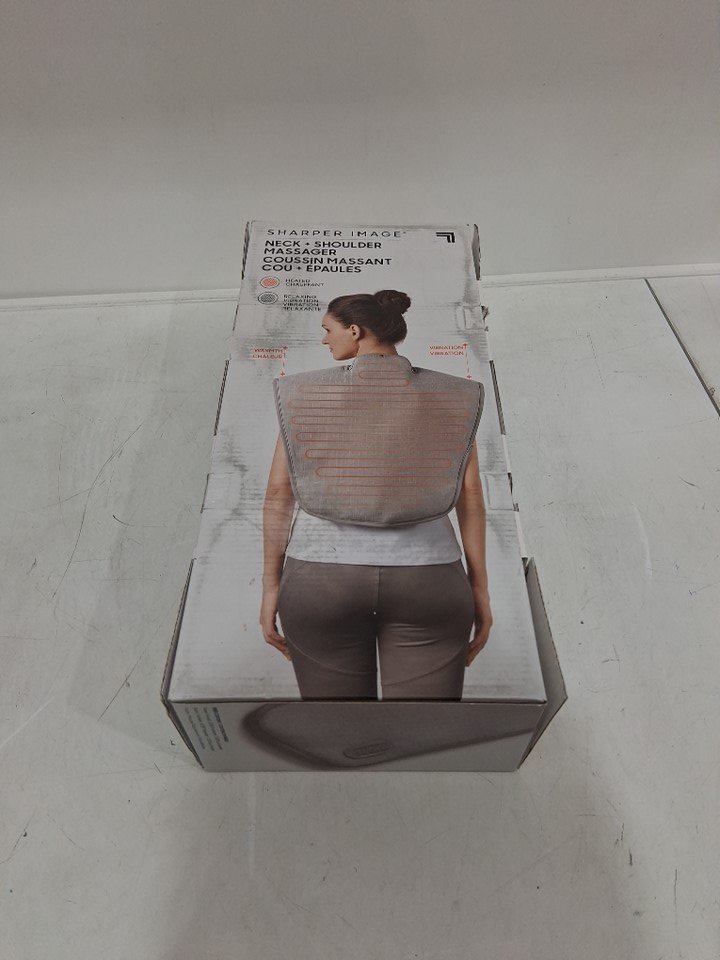 SHARPER IMAGE HEATED NECK AND SHOULDER vibrating MASSAGER - 30.7" x 18.9" - grey
