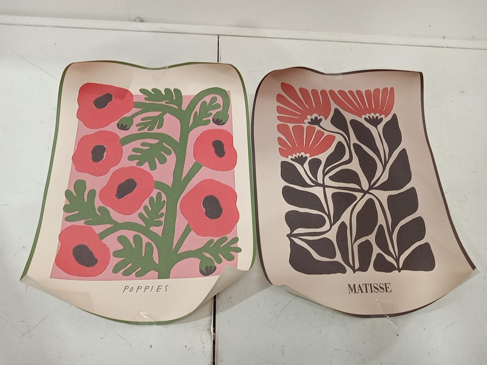 2PC Poppy AND Matisse Style Flower Art Print IN COTTON CANVAS - 17"X12"
