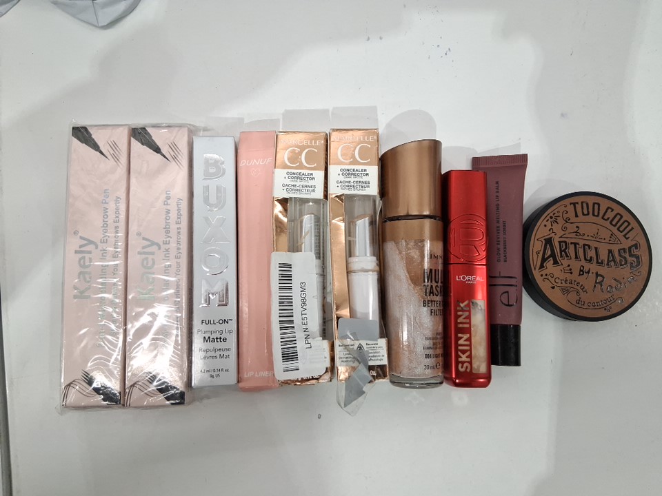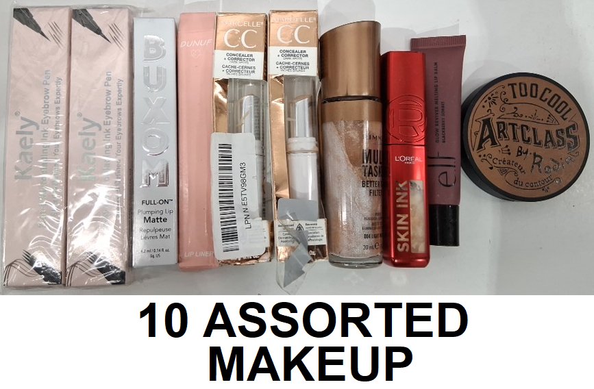10 assorted makeup - assorted brands, shades and finishes - brow pencil / lipstick / concealer / foundation / lip balm / contour