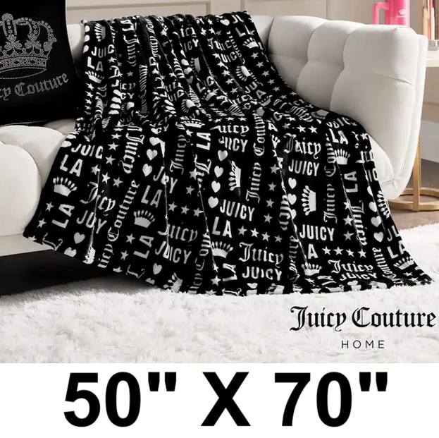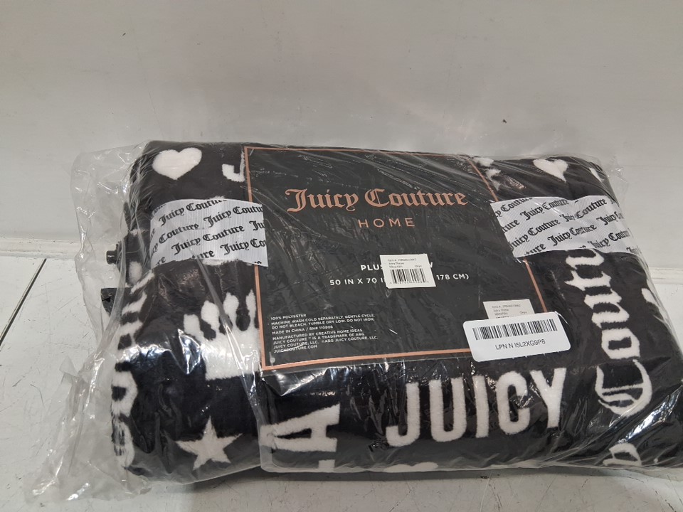juicy Couture HOME JUICY WORDS PLUSH THROW - 50" X 70" - BLACK/WHITE