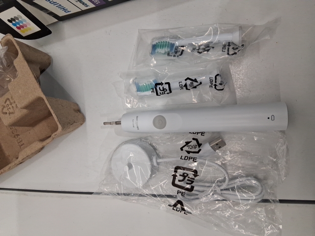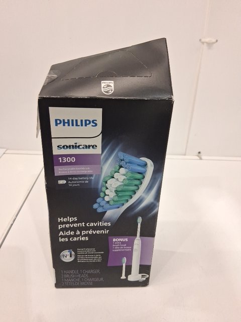 PHILIPS SONICARE 1300 RECHARGEABLE ELECTRIC TOOTHBRUSH with two brush heads - WHITE (MODEL: HX3642/02)