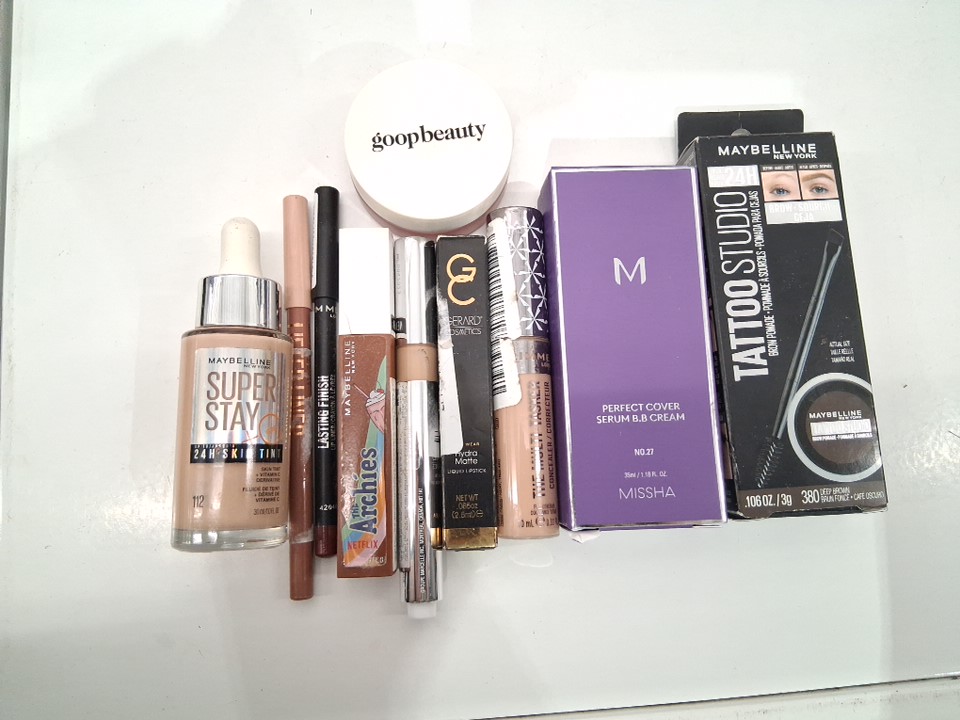 10 assorted makeup - assorted brands, shades and finishes - foundation / lip liner / concealer / blush / brow gel / bb cream