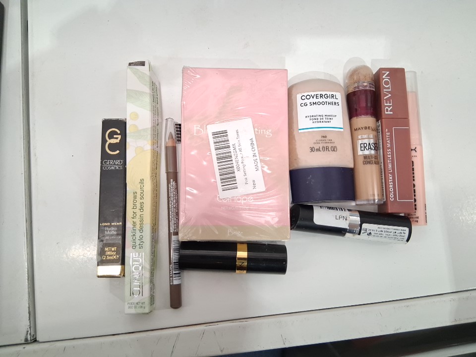 10 assorted makeup - assorted brands, shades and finishes - concealer / foundation / setting powder / lipstick / brow pencil