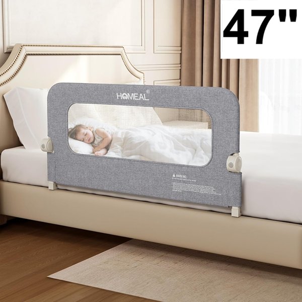 toddler homeal breathable foldable bed rail with u-shape base 47" x 24" - grey