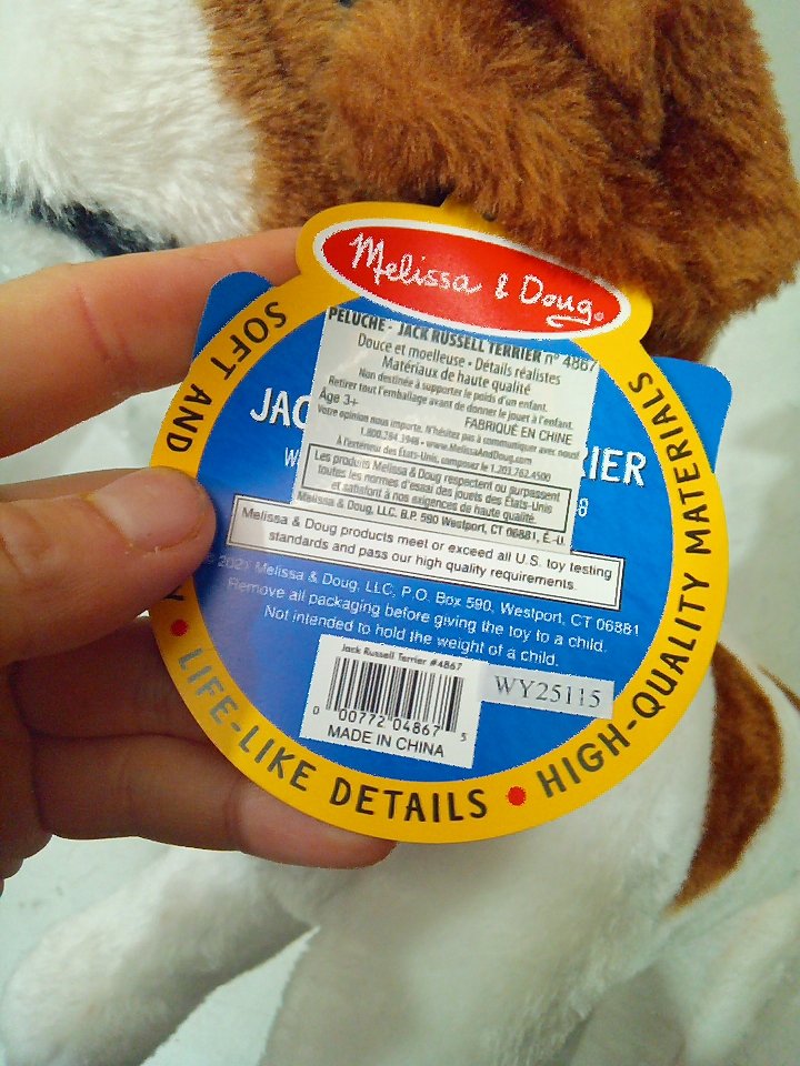 Melissa & Doug Giant Jack Russell Terrier - Lifelike Stuffed Animal Dog - 12" tall - white/brown