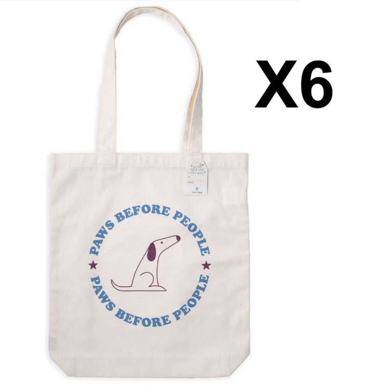 6 paws before people canvas tote bags- 13.78"H x .16" W x 27.5" d- white/purple