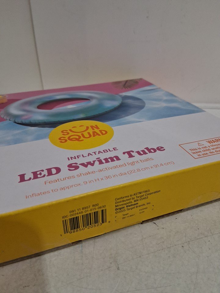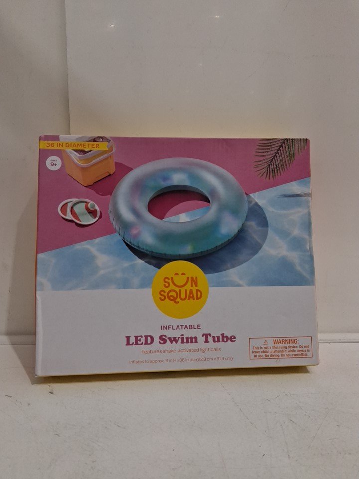sun squad inflatable led swim tube with shake-activated light balls - 36" - blue