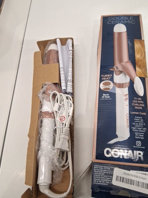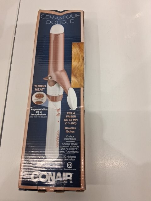 CONAIR DOUBLE CERAMIC CURLING IRON - 1 1/4" BARREL - WHITE/ROSE GOLD (MODEL: CD702GNC)