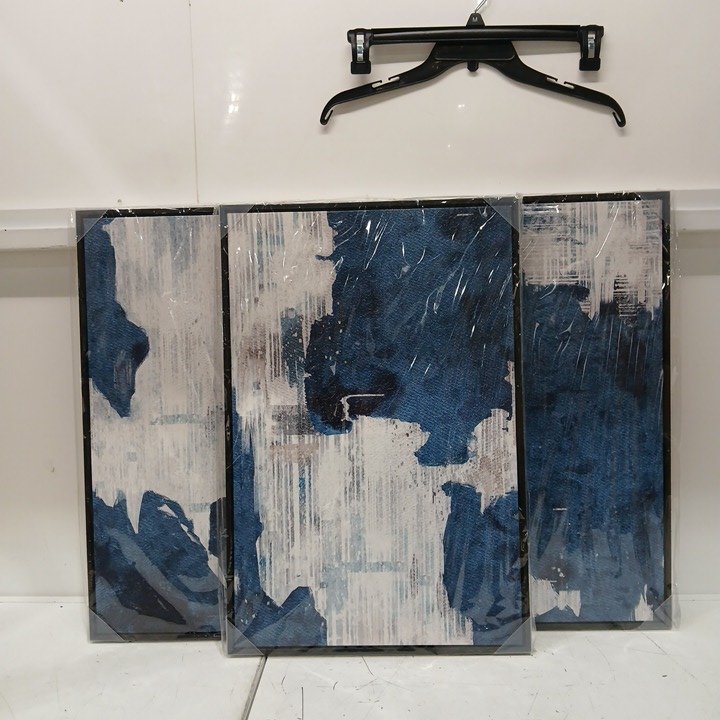 3pc ASDCEUTICALS Large Canvas abstract Wall Art - 24" x 16" - navy blue/white