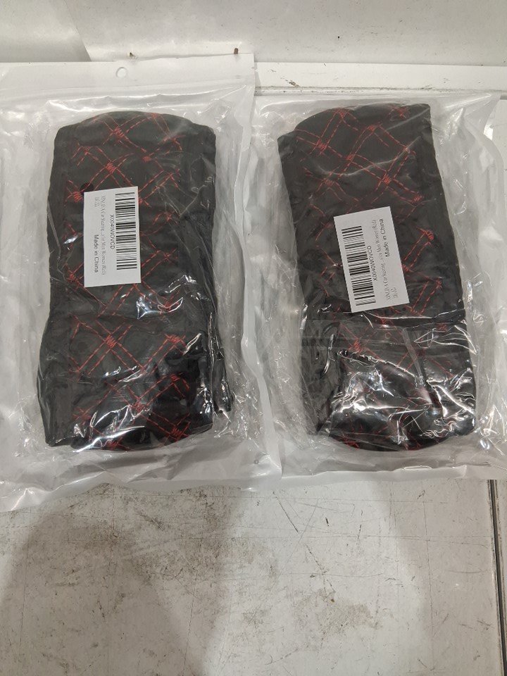 2 Anti-Slip Breathable PU Leather Elastic Steering Wheel Protector cover - 15" - black/ red stitching