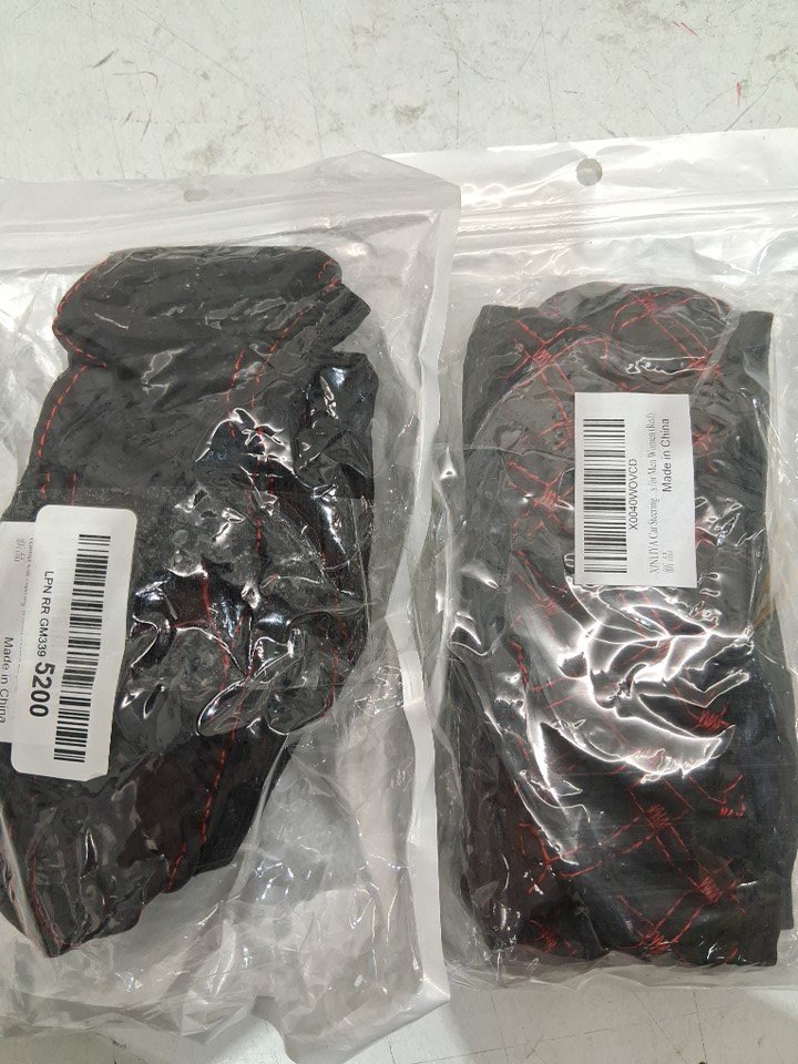 2 assorted Anti-Slip Breathable PU Leather Elastic Steering Wheel Protector cover - 15" - black/ red stitching