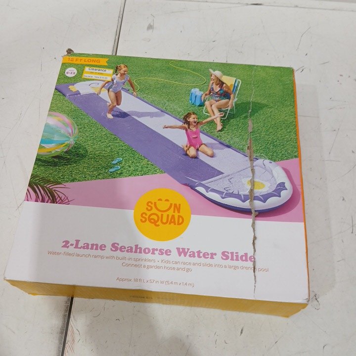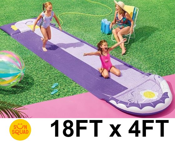 Sun Squad 2-Lane seahorse Slip and Slide with Built-in Sprinklers and drench pool, 18ft x 4ft - purple