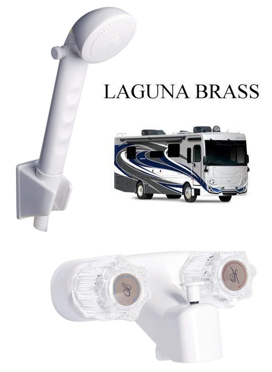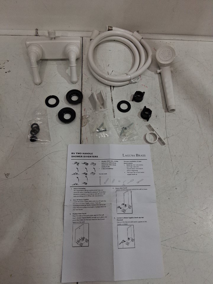 LAGUNA BRASS TWO HANDLE TUB DIVERTER WITH SHOWER HEAD - WHITE
